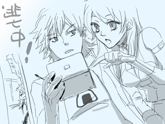 大丈夫?ネタ起点の逃亡劇が始まったので(勝手に)、逃走中にDS(lite)のFFで遊んでいる神谷君のプレイを思わず眺めて質問する都雲の図。