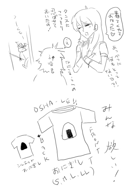 ちなみにですね、本当はね、この左手はぎゅっとしていて、その手には彼の某自作フィギュアが握られているという絵だったのですが、なんというかさすがにおこめTには関係ないという○※商店販促チームの判断で、その部分はカットとなったト!
