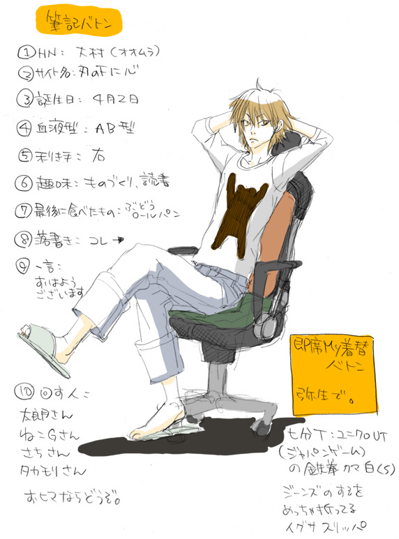 後者筆記バトンと同様で御願いします。