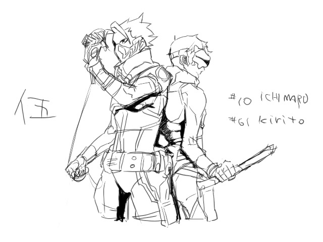 二人の体型差を出してみたかったので並べて描いてみたよ(忍務ではたまに組む)。