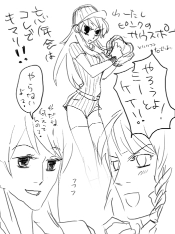 ですが、本店の鳩サブレを差し入れ頂いたり(Tさんありがとうございました!)、高森さんには色々頂いた挙げ句、さつきちゃんとニゴをスケブお願いされたり(ありがとうございました〜!)、SPOMAで少年ゲートボール漫画の原作をしている志岡君ともっさりダベったり(長々といろんな話をどうもありがとう…w)。なによりも売り子お手伝いしてくれた相方には感謝です(モンハン買うの素で忘れててごめん…)。