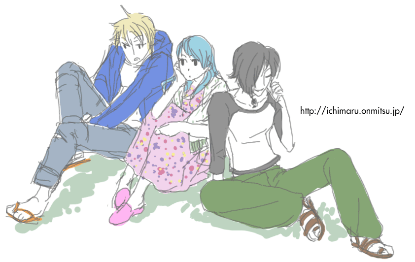 そんなわけで皆様にお詫び?お礼?を込めて??w、雑誌見てたら描きたくなった落書き。元ネタとはちょこちょこ違うんですが(服とか含め)。与一は携帯で誰と喋ってるの!w