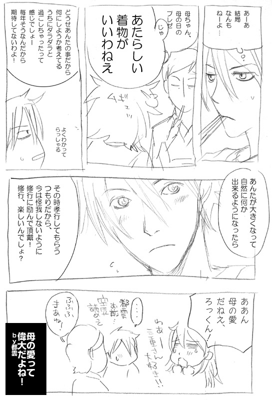 最初は、後半3つのお題を合体したまんが1本だけのつもりだったのですが、いろいろ考えているうちに描きたいネタが出来てきたので…