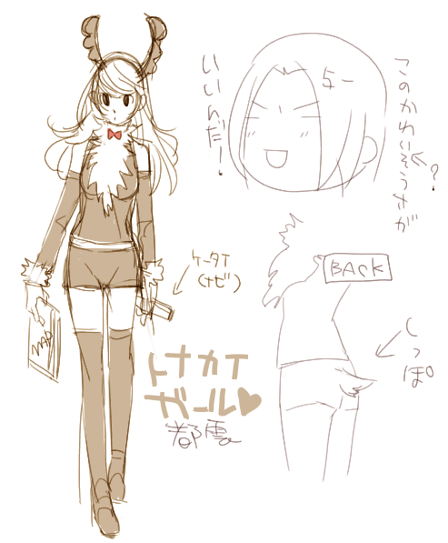 で、お友達からリクエストがあったのでメリクリ絵のトナカイガール・都雲の全身図らくがき。