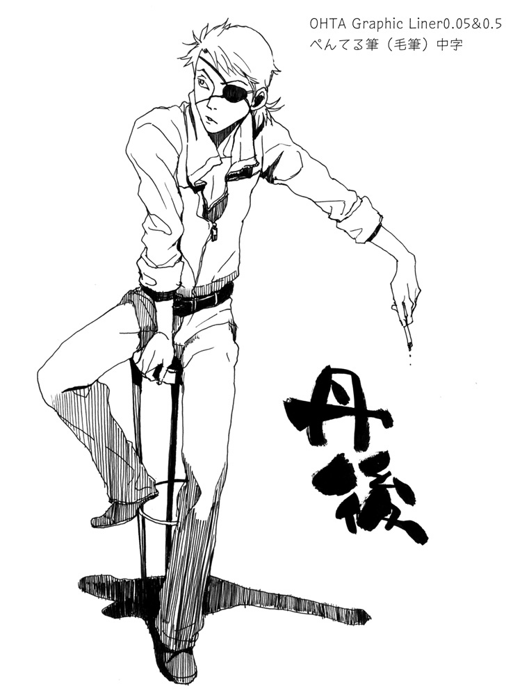 てきとうなので線が荒いけど。あと筆ペンもひさびさに買ったのだが入れるものもないので適当に名前入れたよ…w。