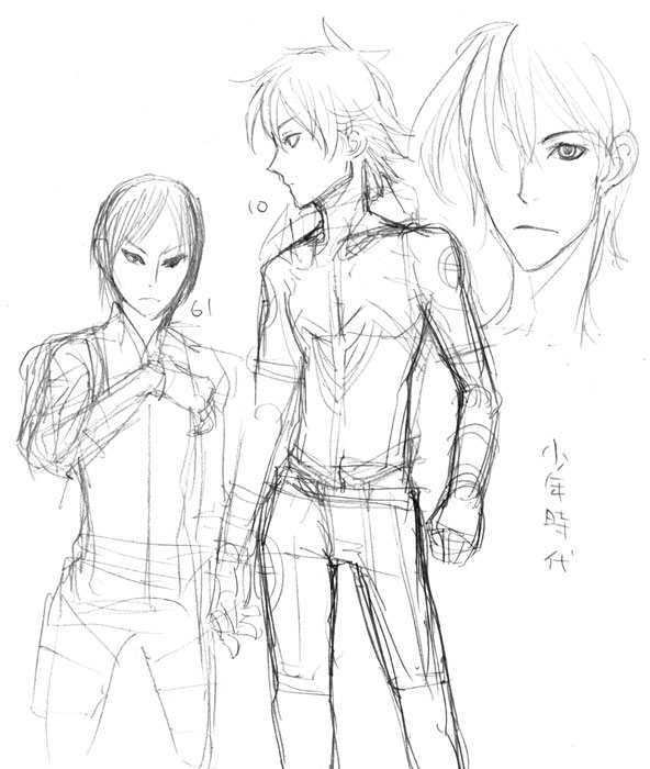 このくらいの年齢での体型を描いてみたかっただけなんだけど。そこまでごつくもなく…という微妙なお年頃の。この後市丸はどんどんでかくなるわけですが。