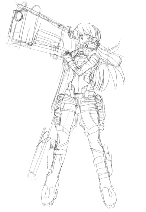 現実にあったら邪魔でしょうがない「腰回りぶらさがり装備」が絵的に好きななので予備弾を下げてみました危険。
