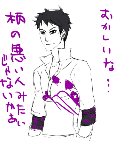 千鳥柄ではなく濃い渋いピンク系でシルエットの花とかがプリントされてるような七分袖(レイヤード風の。彼はほとんど半袖は着ません)をね、考えていたんですが、描いてみたらこう…なんですか、気まぎれで千鳥柄+波にしたら、あら不思議!とてもカタギっぽくない人みたい!