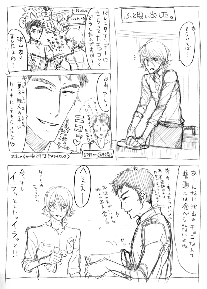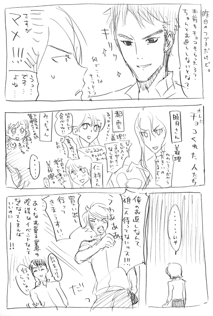 バレンタイン直後にネームらしきものをメモっていて、それを増大してみました。小ネタですが。fortのみなさん(というか三人)。