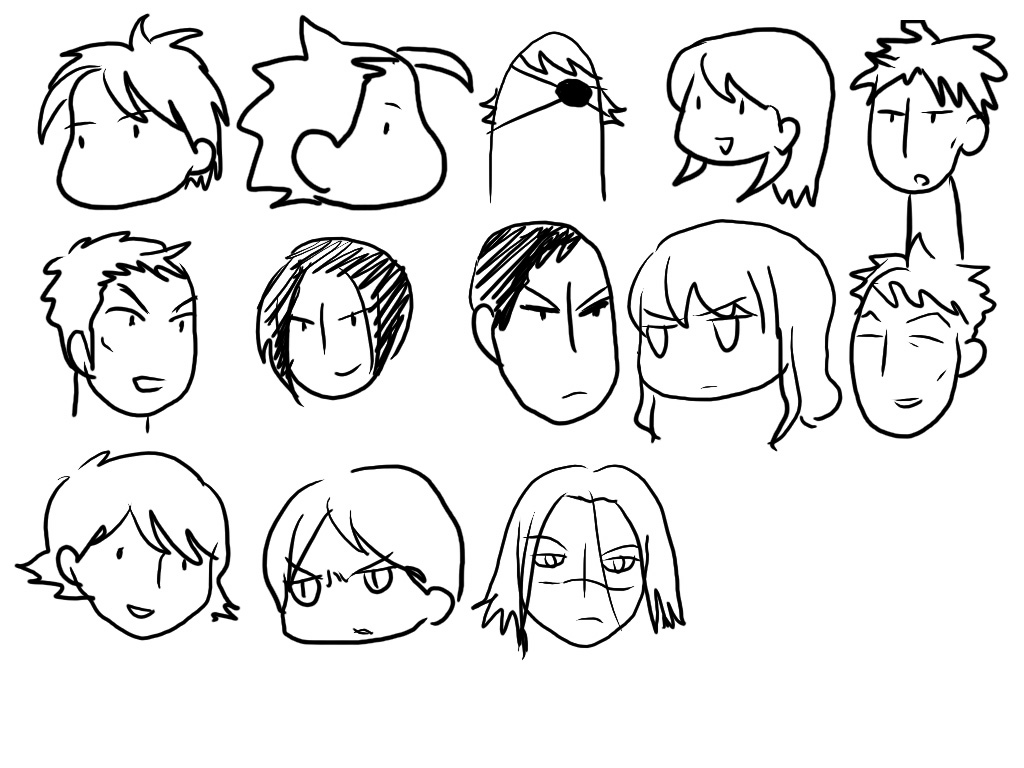 で、その省略(ディフォルメというより単なる記号)したキャラを、ちょっこし一覧にしてみました。(普段通り適当に描いた)