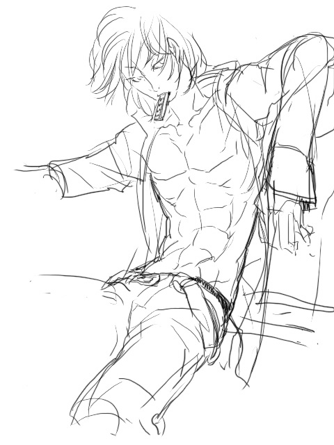 立っている市丸を描くときって、腰が入ってるポーズとか捻ってるポーズが多くなるんですよね…骨盤を中心にぐるぐる回したり腰がガツッと入ってたり姿勢が低かったり(しのびだからね…!)。派手アクション、リアルには有り得ない(というよりある必要がない)外連味のある動きを体現する、というイメージなのでついそうなってしまう…。